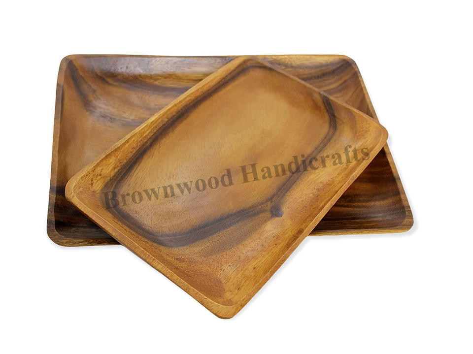 ชุดถาดเสิร์ฟไม้อะคาเซียทำด้วยมือ2สีทำจากไม้ธรรมชาติ