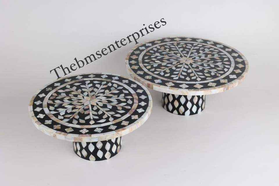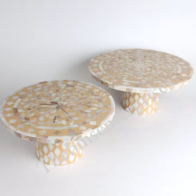 ที่วางเค้กไม้สีเบจทำด้วยมืออุปกรณ์ตกแต่งงานนำเสนอทำจากไม้แม่มุก
