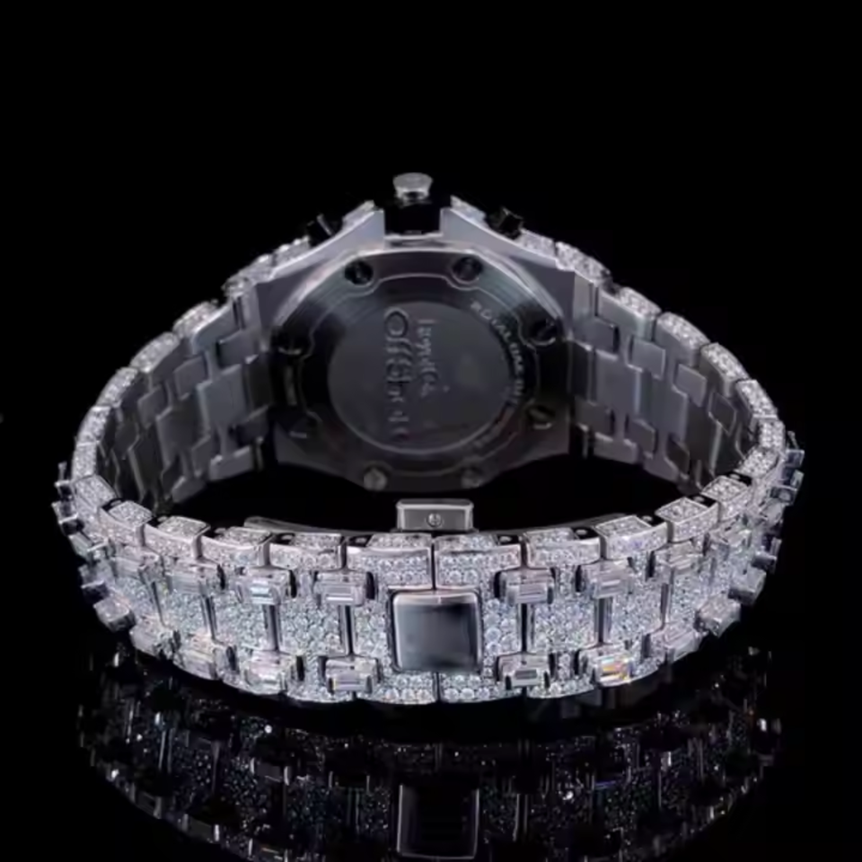นาฬิกาข้อมือสำหรับผู้ชายประดับเพชรโมอิสสีพิเศษงานทำมือปรับแต่งได้ตามต้องการ