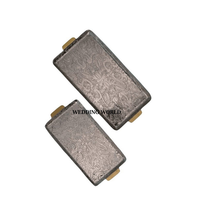 ถาดสแตนเลสสตีลช็อคโกแลตดีไซน์เนอร์งานแฮนด์เมดคุณภาพสูงถาดหรูหราพร้อมชุดโลหะสองชิ้น