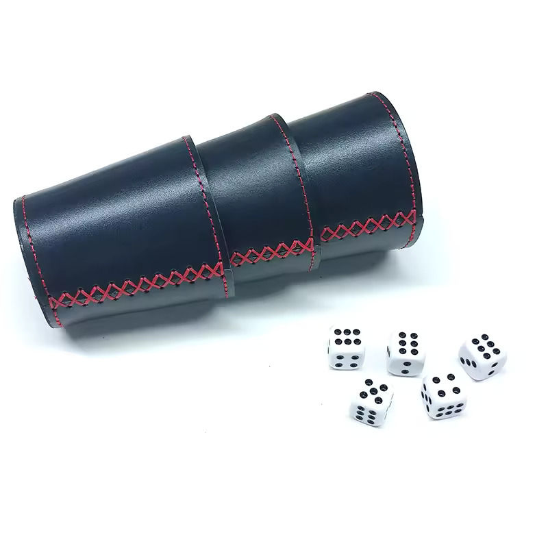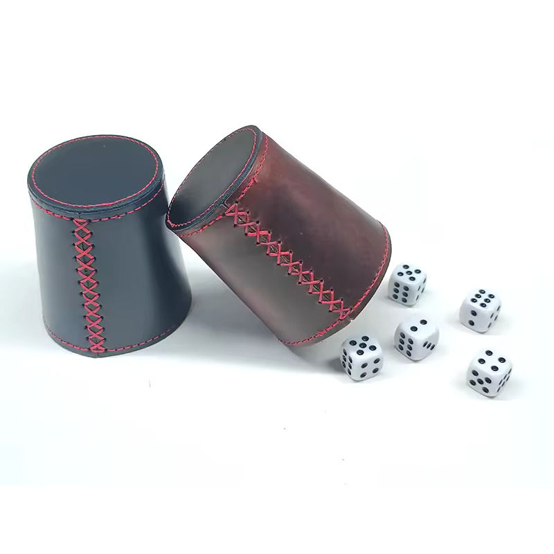 ถ้วยลูกเต๋าหนังเย็บมือคุณภาพพรีเมียม ดีไซน์คลาสสิคแบบสปอร์ต ลายนูน หนังแท้และหนัง PU มาตรฐานระดับมืออาชีพ