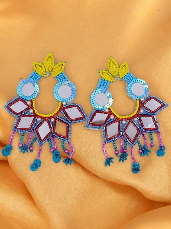 ต่างหูลูกปัดแก้วทำมือคุณภาพพรีเมียม สำหรับผู้หญิง ลายปักประณีต ดีไซน์ดอกไม้ห้อยระย้า จาก MD HANDICRAFTS