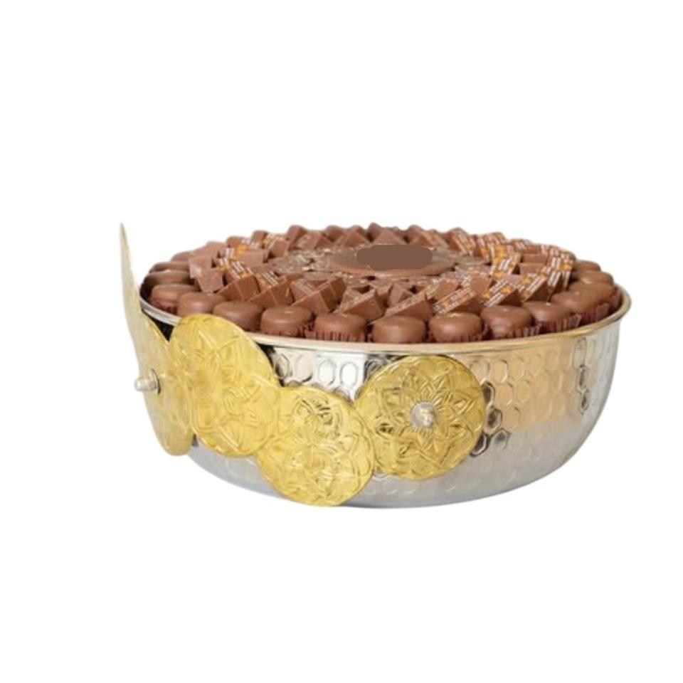 ถาดใส่ช็อกโกแลตโลหะเงินคุณภาพพรีเมียม ทำด้วยมือ ลายตอก พร้อมขาตั้ง สำหรับใส่ถั่ว ช็อกโกแลต ของขวัญในโอกาสพิเศษ