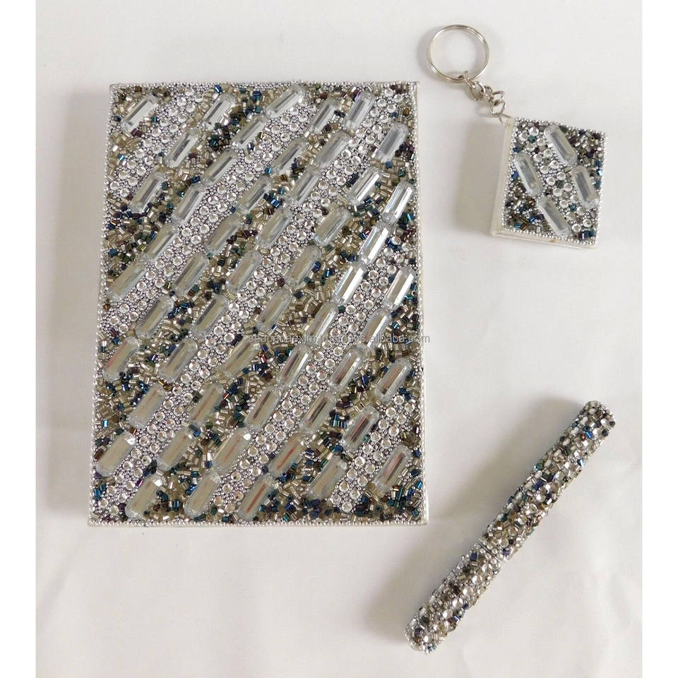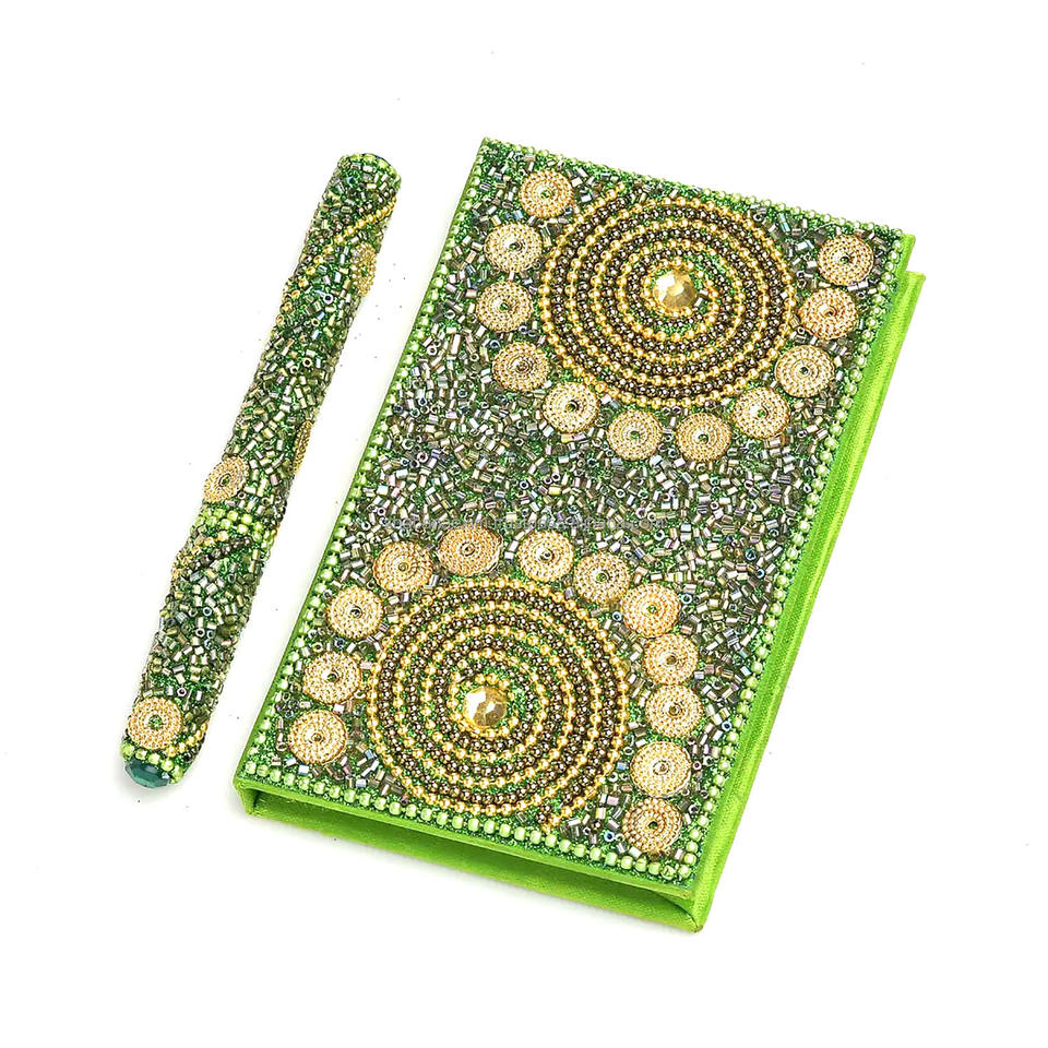 สมุดบันทึกงานฝีมือประดับลูกปัดพร้อมปากกา คุณภาพพรีเมียม งานแฮนด์เมดจากอินเดีย ของขวัญงานฝีมือประดับลูกปัด