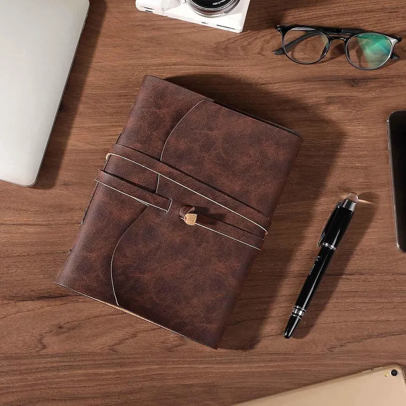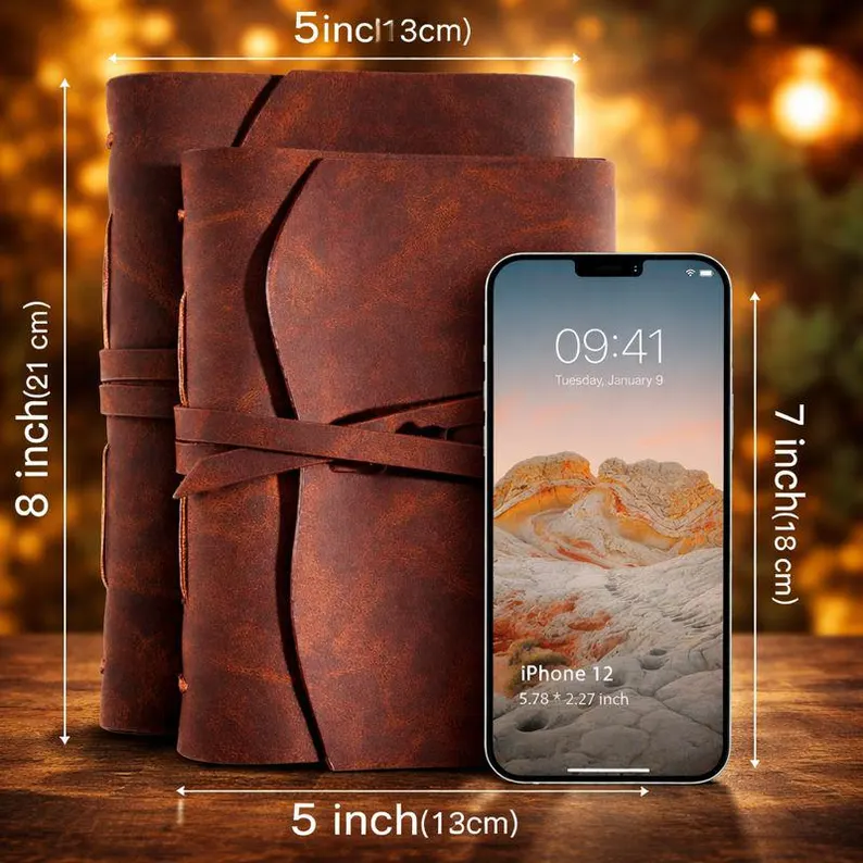 สมุดบันทึกปกหนังทำมือคุณภาพพรีเมียม กระดาษขอบดิบ ปราศจากกรด สไตล์วินเทจ สำหรับการเดินทาง สมุดจดบันทึกแบบเรียบง่าย