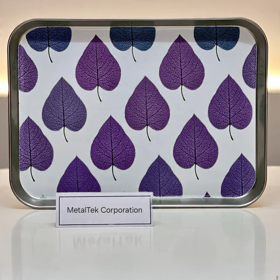 ถาดสแตนเลสสี่เหลี่ยมงานแฮนด์เมดใช้ตกแต่งได้หลากหลายถาดเสิร์ฟอาหารงานตามสั่งสีสันสดใส
