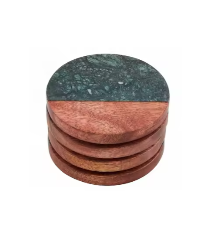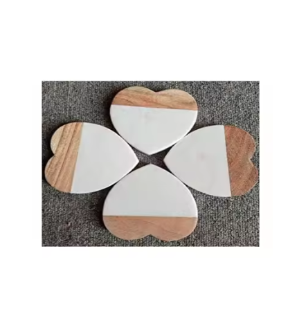 Premium Quality Handmade Wooden & Marble Coasters with Best Design Cubic Pattern for Weddings & Events Table Decor Anti-Slip