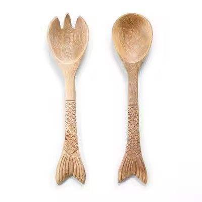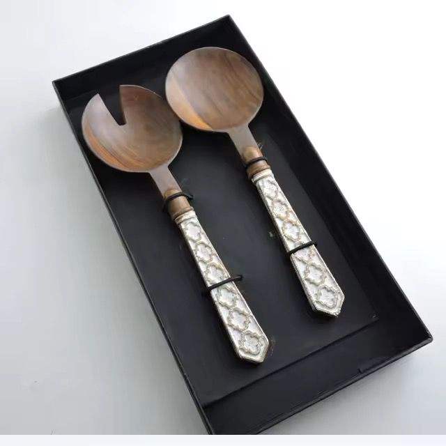 ชุดเซิร์ฟสลัดไม้ทำด้วยมือพร้อมด้ามหวาย