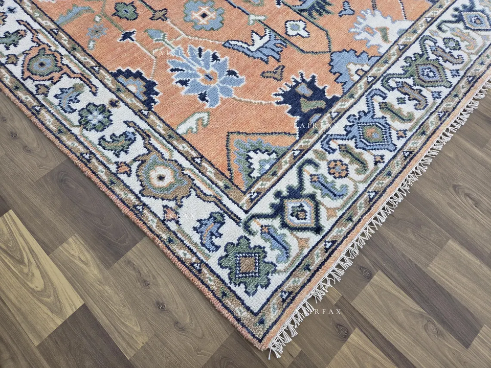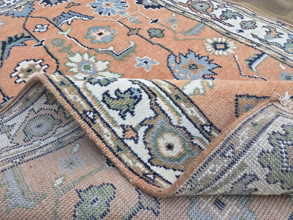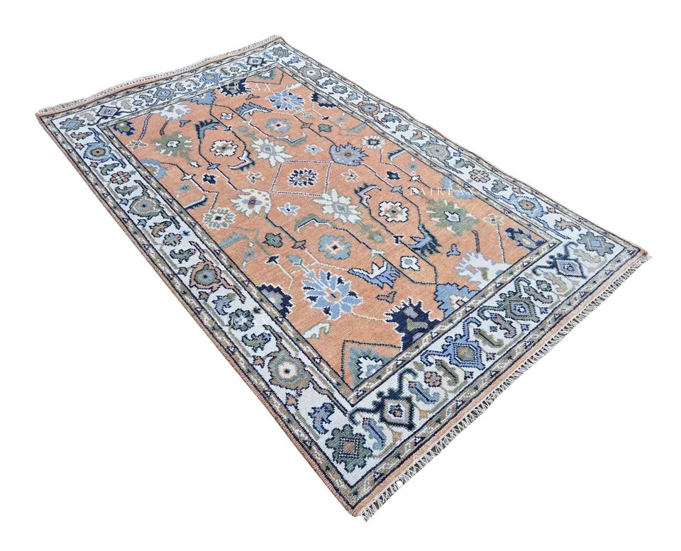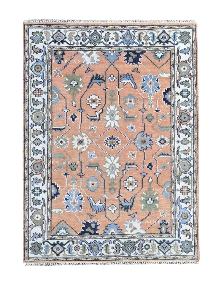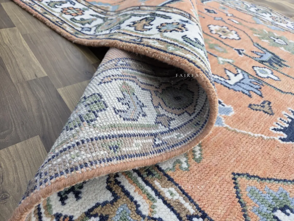 พรมโอชัคทำมือคุณภาพพรีเมียม สีพีช น้ำเงิน พรมลายตะวันออก ขนาดสั่งทำได้
