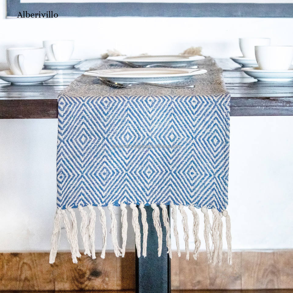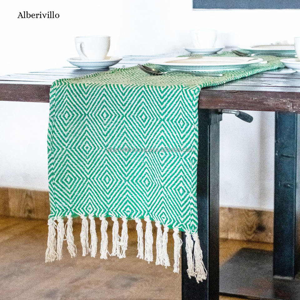 ผ้าปูโต๊ะผ้าฝ้ายทนความร้อนผ้าทอสีเขียวสำหรับวิ่งโต๊ะกาแฟในฟาร์ม