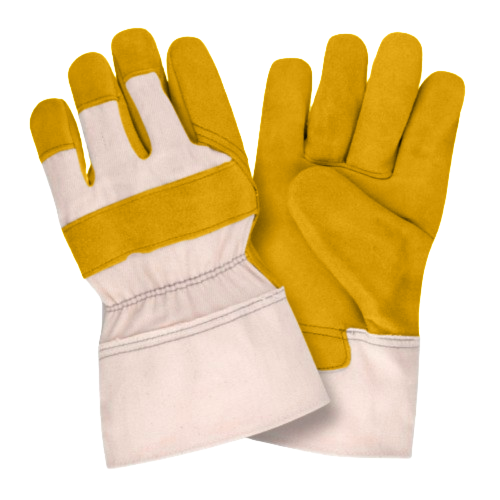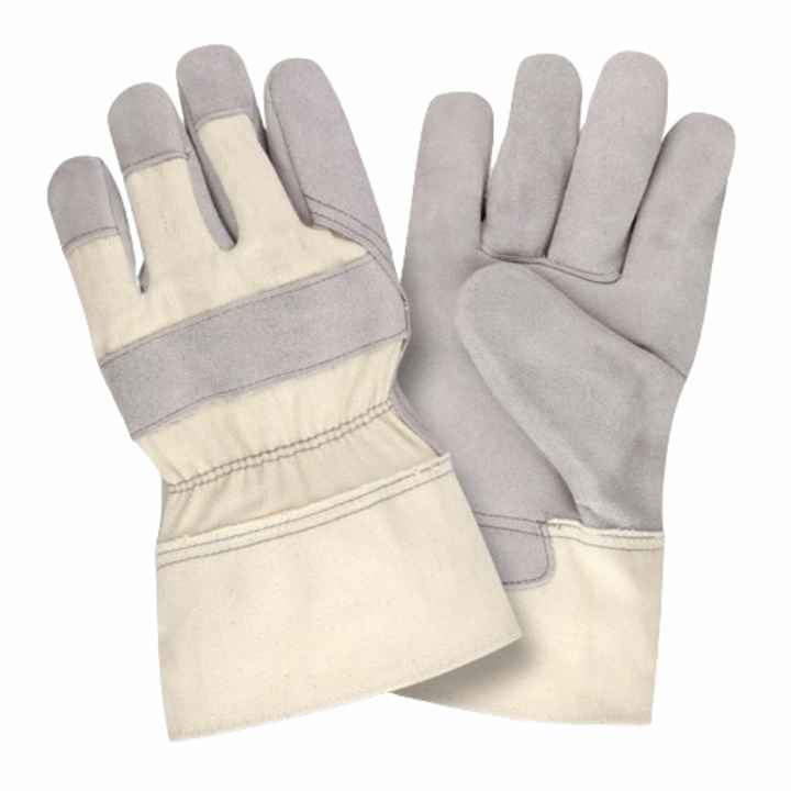 ถุงมือหนังวัวแยกชิ้นสำหรับงานหนักของแคนาดาคุณภาพระดับพรีเมี่ยมสวมใส่สบายเพื่อความปลอดภัยสะท้อนแสง