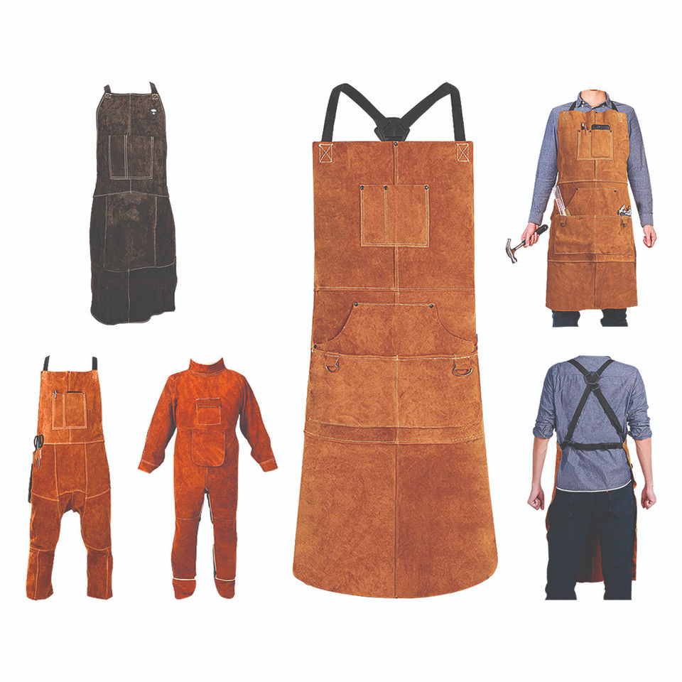 ผ้ากันเปื้อนสำหรับงานเชื่อมหนังวัวแยกป้องกันไม่ให้เกิดประกายไฟสำหรับใช้ในงานอุตสาหกรรมใช้ป้องกันร่างกายและเสื้อผ้า