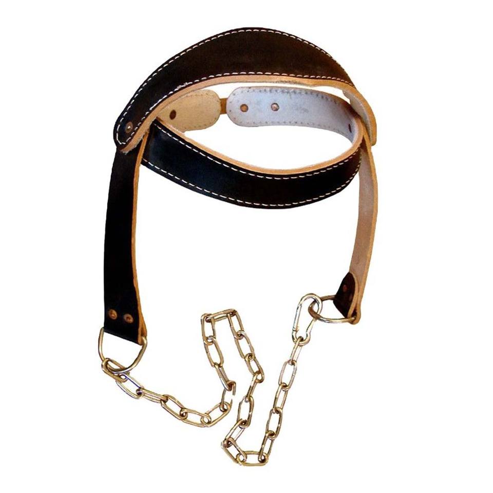 สายรัดศีรษะหนังคุณภาพพรีเมียม ทนทาน พร้อมโซ่แข็งแรง อุปกรณ์เสริมสำหรับฟิตเนส เหมาะสำหรับยกน้ำหนัก เพาะกาย และออกกำลังกายในยิม