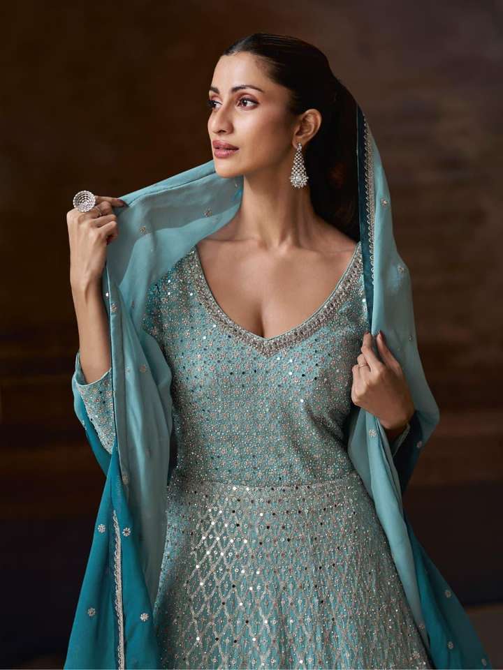 ชุดอนาร์กาลีผ้าจอร์เจตต์เทียมคุณภาพพรีเมียม สำหรับงานพิเศษ ลุคแบบดั้งเดิม ราคาดีที่สุด จัดส่งทั่วโลก รวดเร็วทันใจ