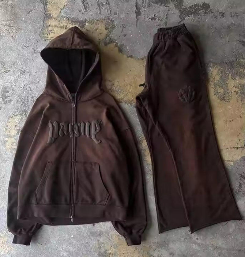 เสื้อฮู้ดทรงหลวมและกางเกงวอร์มสำหรับผู้ชายผ้าคอตตอนขนแกะ100% โอเวอร์ไซส์คุณภาพสูง
