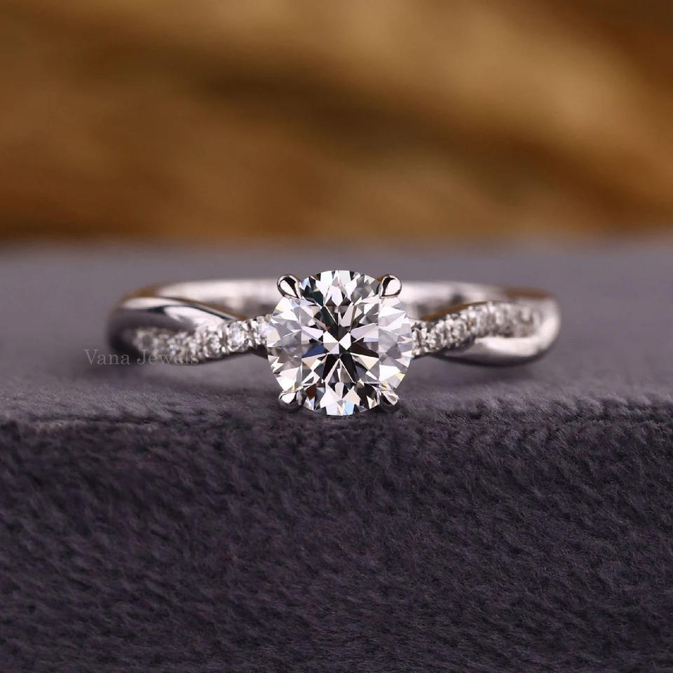 แหวนเพชรที่ปลูกในห้องทดลองที่สวยงามได้รับการรับรองจากร้าน IGI คุณภาพสูงสีทองตัดอย่างยั่งยืนและมีจรรยาบรรณ