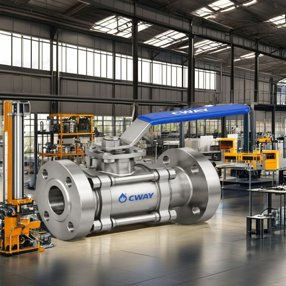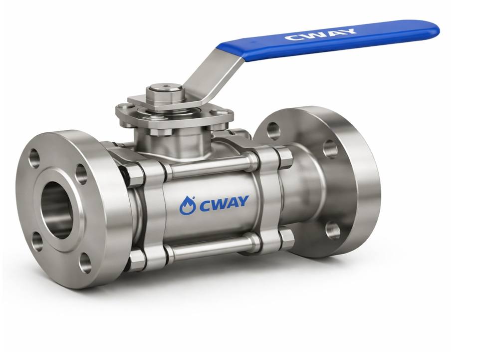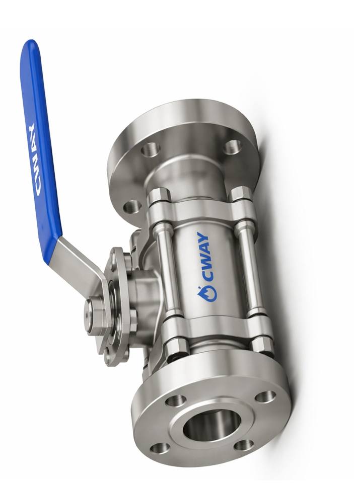 วาล์วสแตนเลสคุณภาพพรีเมียม ดีไซน์ 3 ชิ้น ควบคุมด้วยคันโยก แบบฟูลบอร์ ปลายหน้าแปลน สำหรับระบบน้ำประปาและบำบัดน้ำแบบแมนนวล