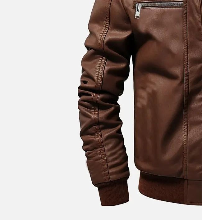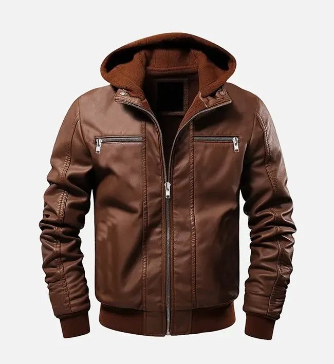 เสื้อแจ็คเก็ตหนังมีฮู้ดสำหรับผู้ชาย, เสื้อแจ็คเก็ตหนัง PU คุณภาพสูงดีไซน์ใหม่