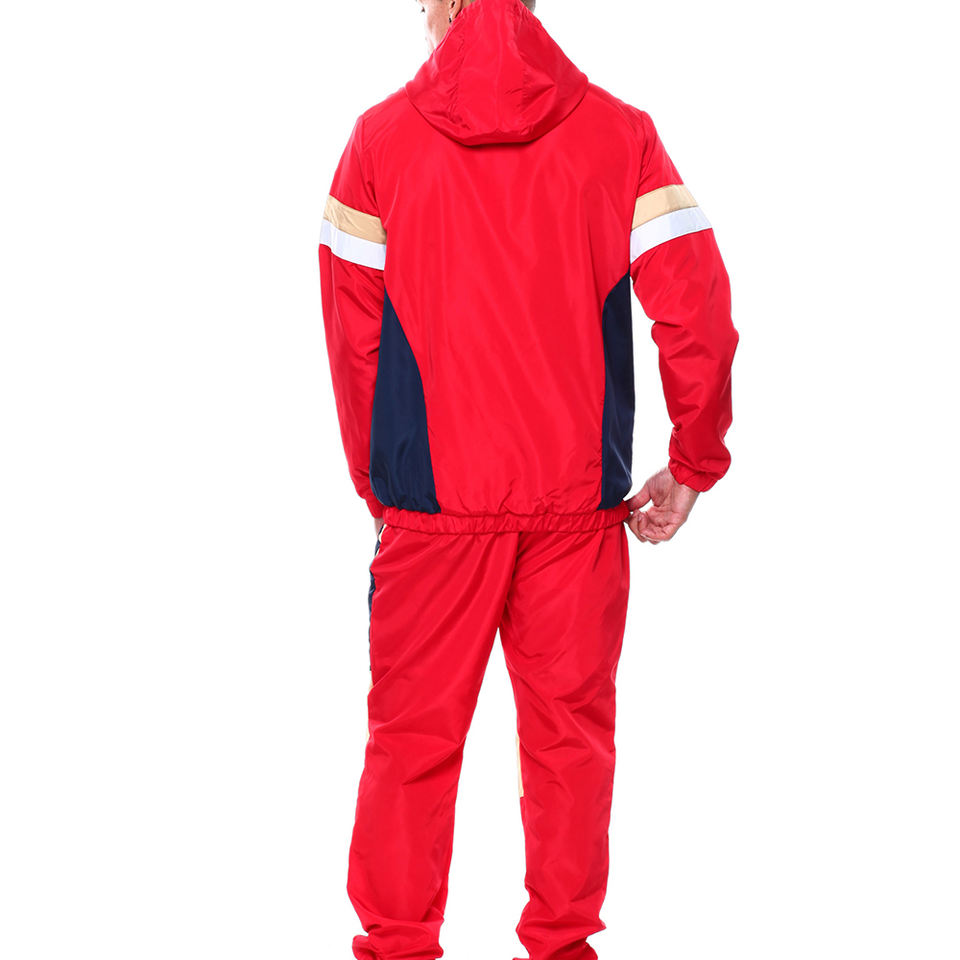 ชุดวอร์มกันลมแบบมีฮู้ดสำหรับผู้ชาย คุณภาพพรีเมียม ดีไซน์ทันสมัย ชุดสองชิ้นสั่งทำได้ ผลิตจากโพลีเอสเตอร์ 100% ระบายอากาศได้ดี