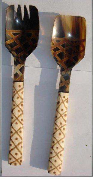 ช้อนส้อมเสิร์ฟสลัดทำจากเขาสัตว์ คุณภาพพรีเมียม ขายดี ชุดช้อนส้อมเสิร์ฟสลัดสำหรับใช้ในบ้านและร้านอาหาร