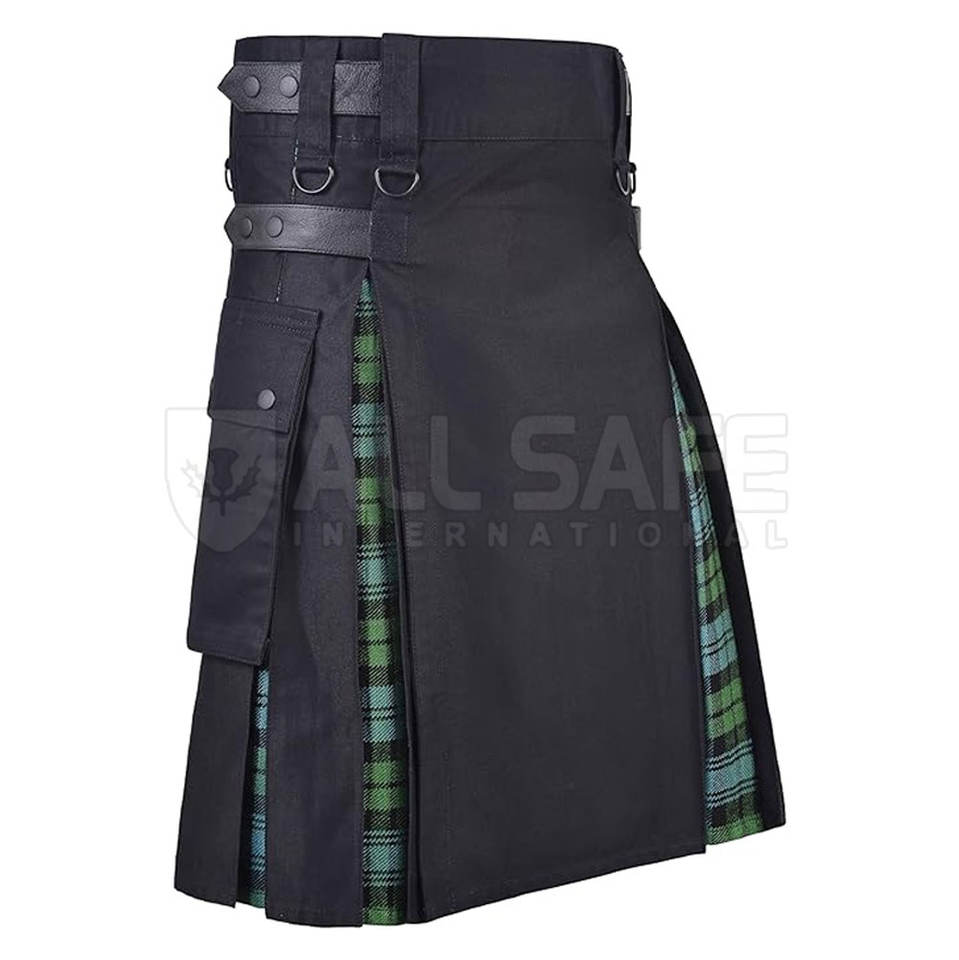 กระโปรงสก็อตไฮบริดคุณภาพพรีเมียมสำหรับผู้ชายสไตล์ยูทิลิตี้ทันสมัยพร้อมห่วงเข็มขัดผ้าคอตตอนผสมทนทาน