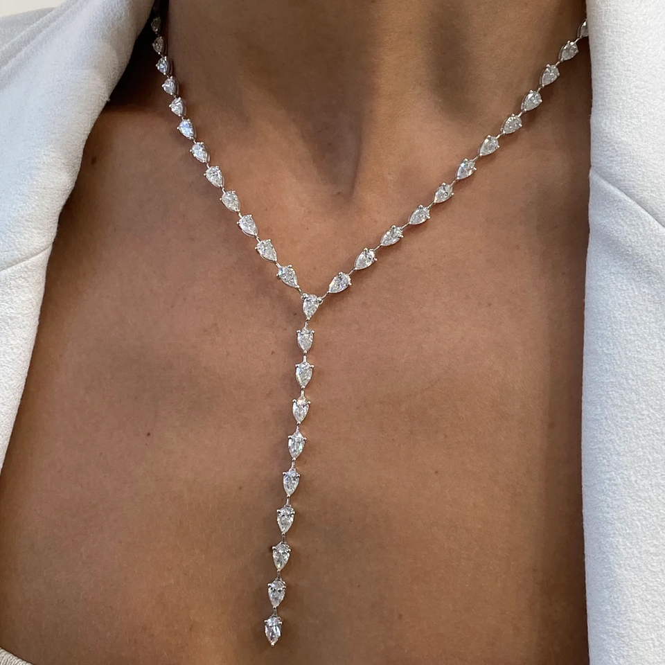ลูกแพร์ตัด VVS เพชร14K คุณภาพระดับพรีเมี่ยมสร้อยคอทองคำแท้เครื่องประดับงานแต่งงานระดับพรีเมี่ยมสำหรับผู้หญิง