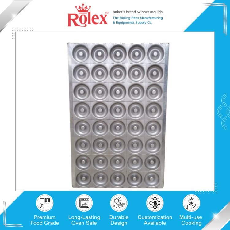 ถาดอบโดนัทคุณภาพพรีเมียมสำหรับงานอุตสาหกรรม ใช้ซ้ำได้ ทนความร้อนสำหรับเตาอบ วัสดุอลูมิเนียมสตีล ขนาด 600x400 มม. 40 ช่อง วางจำหน่ายแล้ว