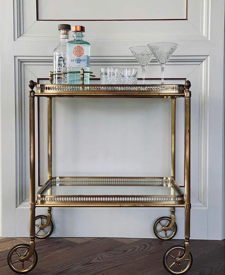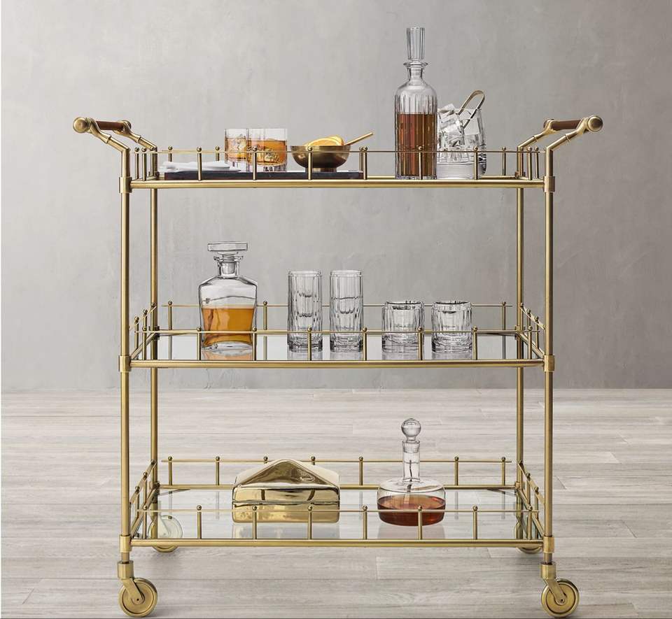 รถเข็นเหล็กคุณภาพพรีเมียมเคลือบทองพร้อมชั้นวางกระจกนิรภัย สำหรับใช้ในบ้าน บาร์ ครัว และเฟอร์นิเจอร์ห้องรับประทานอาหาร