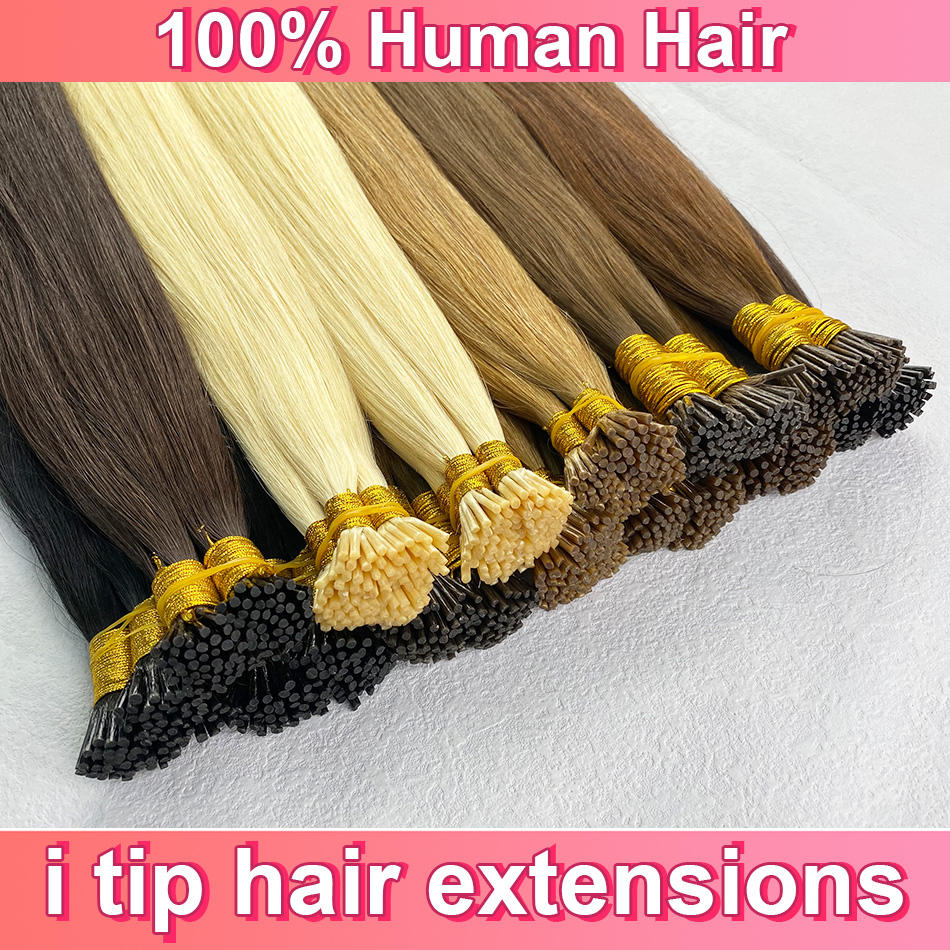 เคราตินสำหรับต่อผม100% ผมมนุษย์แบบ i-TIP Straight ติดไว้ก่อนเคราติน