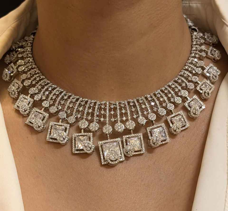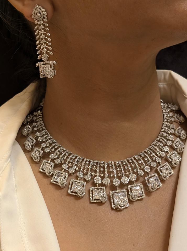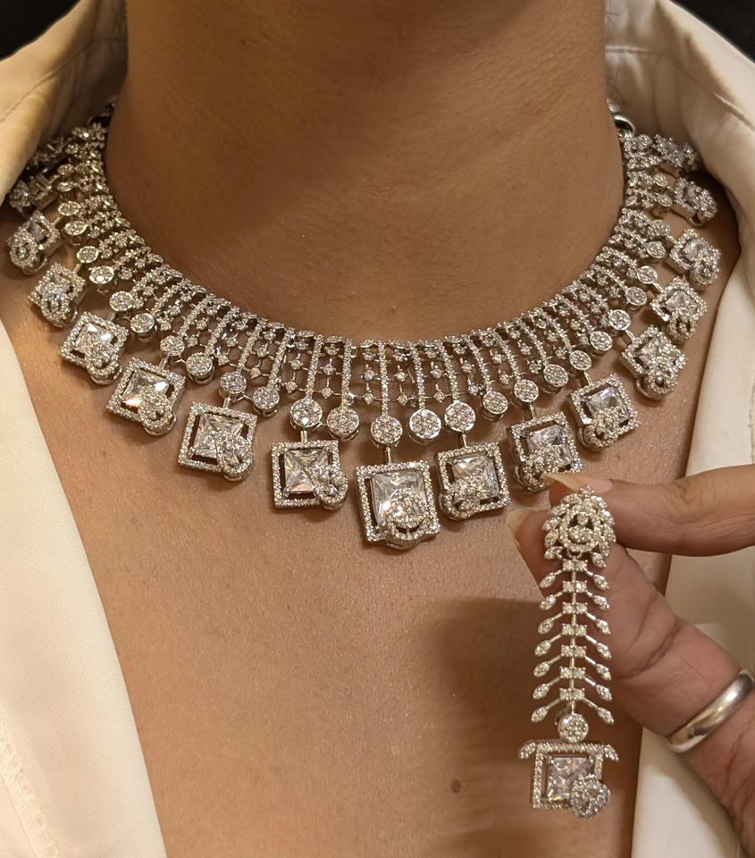 ชุดเพชรอเมริกันพรีเมี่ยมสำหรับผู้หญิงสร้อยคอเพชรเซอร์โคเนียทรงลูกบาศก์ดูหนาสำหรับงานแต่งงานและปาร์ตี้