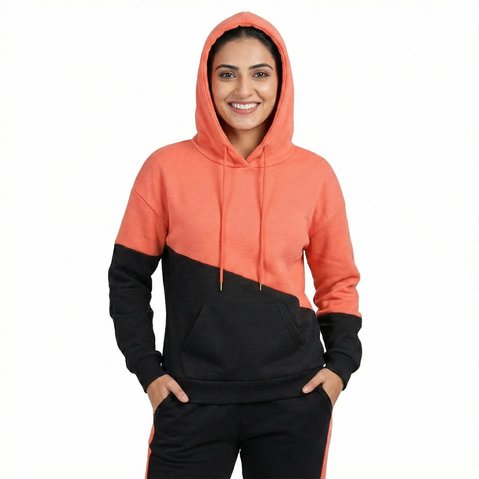 เสื้อฮู้ดดี้ผู้หญิงคุณภาพพรีเมียม ดีไซน์สีสันตัดกัน ทันสมัย สวมใส่สบาย สไตล์สตรีทแวร์ รับออกแบบโลโก้และป้ายแบรนด์ เสื้อฮู้ดดี้ผ้าฟลีซ