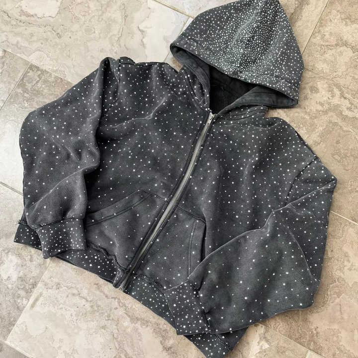 เสื้อฮู้ดดี้ผู้ชายประดับเพชรเทียม ดีไซน์ล่าสุด คุณภาพพรีเมียม ผ้าคอตตอนผสม สวมใส่สบาย สินค้ามาใหม่