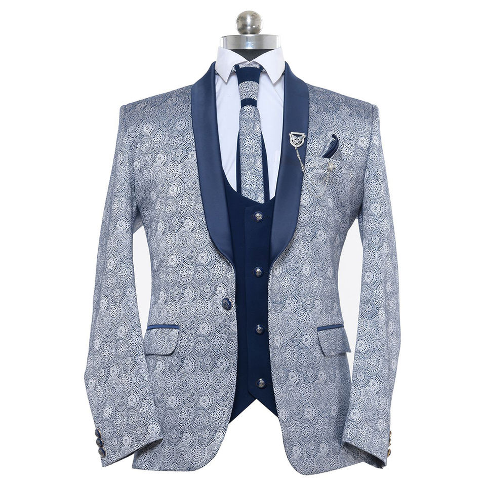 ชุดแต่งงาน3ชิ้นชุดทักซิโด้คอจีนคอเสื้อสูทผ้าลูกฟูกกระดุมสองแถวแบบพรีเมียม