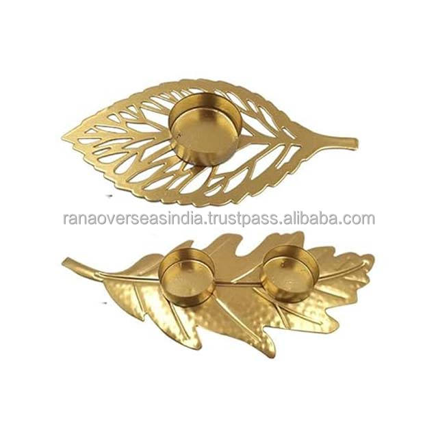Premium Quality Leaf Handcrafted Metal T Light Holder Antique Gold Plated for Stunning Party Themes & Home Decor in Various Size