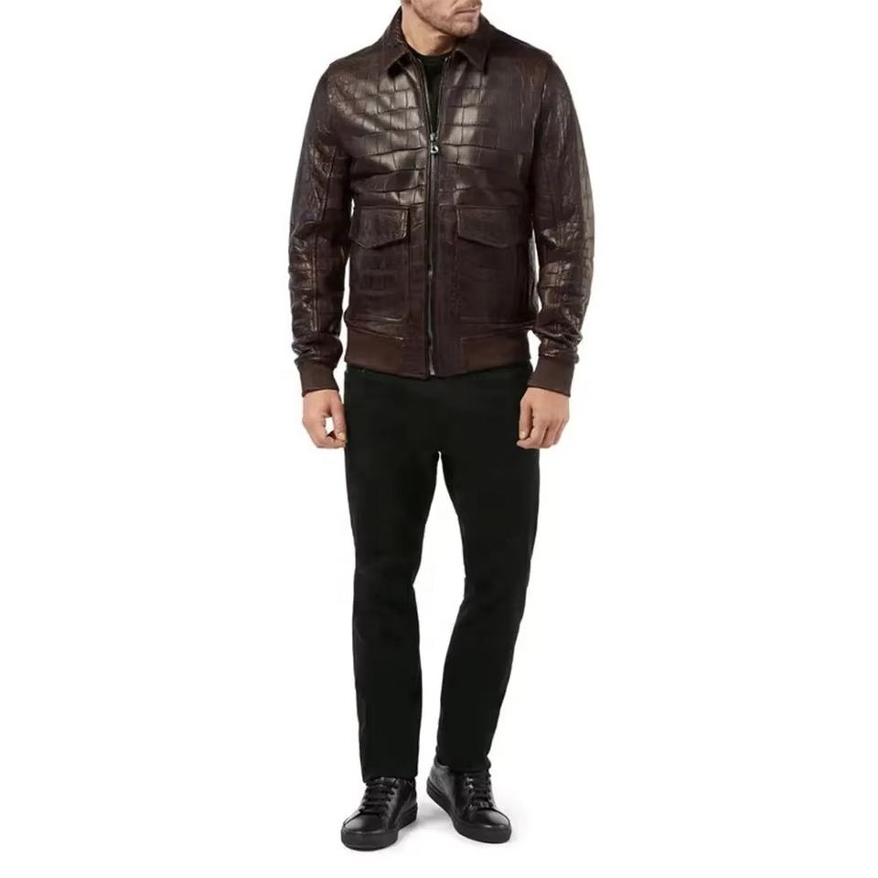 แจ็คเก็ตหนังจระเข้สำหรับผู้ชายแจ็คเก็ตหนังจระเข้ลายนูนสไตล์คลาสสิกสำหรับผู้ชาย