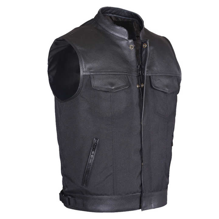 เสื้อกั๊กหนังสีดำติดกระดุมติดกระเป๋าด้านนอกมีกระเป๋าสำหรับเดินหนังคุณภาพพรีเมี่ยม