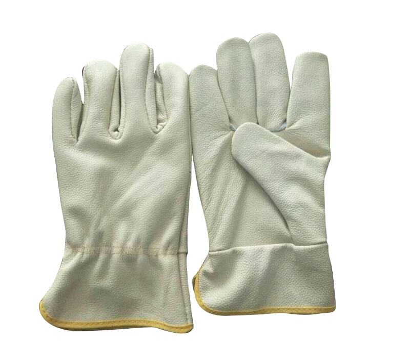 ถุงมือถุงมือหนังวัวสีอ่อนถุงมือเรียบสำหรับป้องกันแขนมืออุตสาหกรรมเพื่อความปลอดภัยสำหรับพนักงานขับรถ