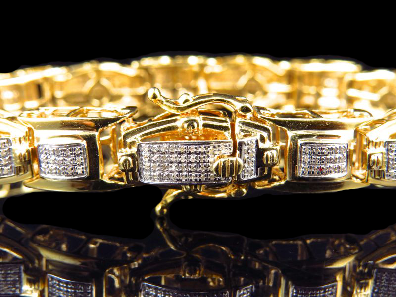 สร้อยข้อมือที่มีคุณภาพระดับพรีเมียม10K สีเหลืองทองแลปเพชรรูปทรงสี่เหลี่ยมผืนผ้าหรูหราสำหรับผู้ชายเครื่องประดับน้ำแข็ง