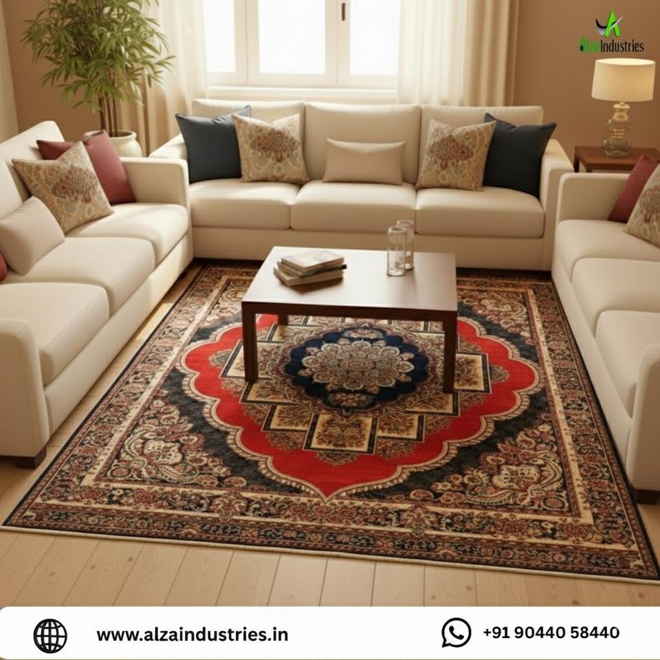 พรมปูพื้นห้องนั่งเล่นคุณภาพพรีเมียม | การออกแบบลวดลายชาติพันธุ์แบบดั้งเดิม | การตกแต่งพื้นที่อย่างมีสไตล์สำหรับบ้านแบบอินเดีย