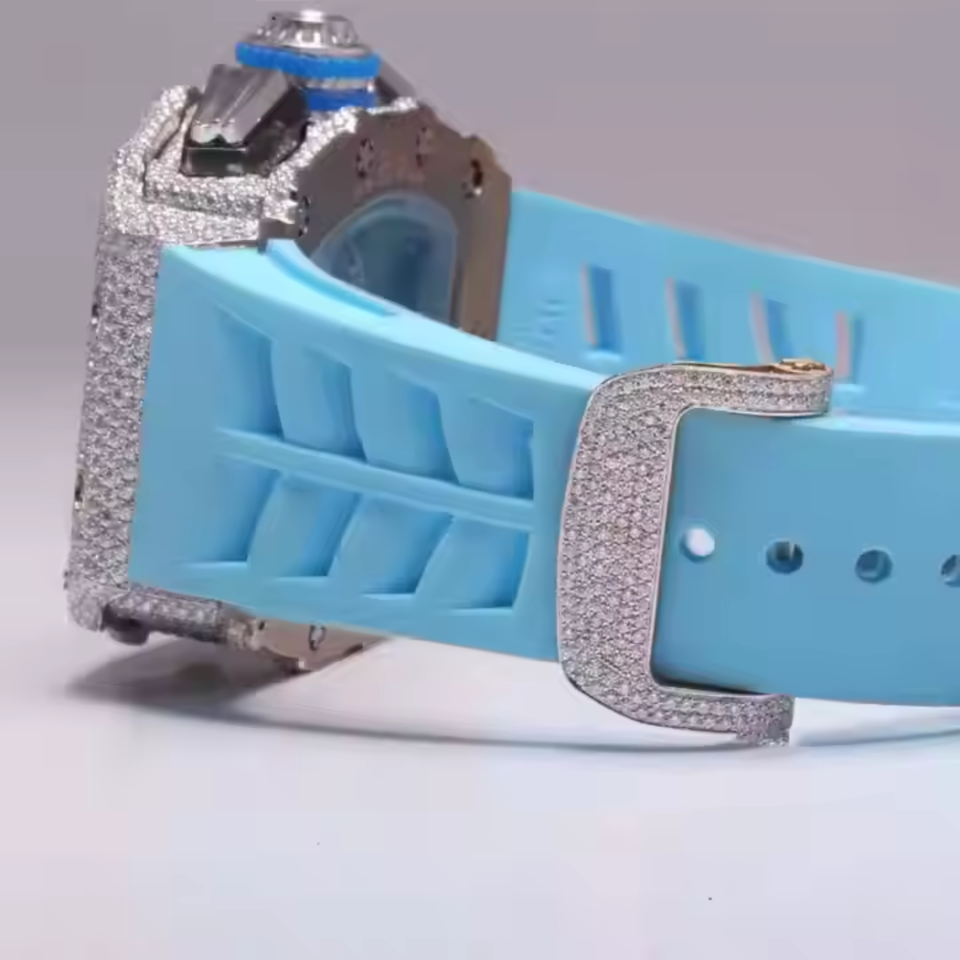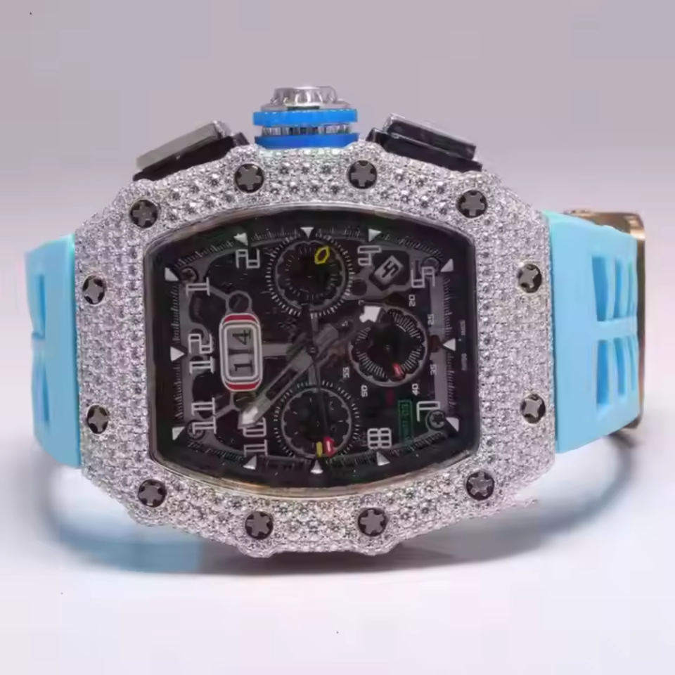 นาฬิกากลไกหรูหราปรับแต่งได้แบบพรีเมี่ยมแก้วควอตซ์ประดับเพชร Vvs Moissanite