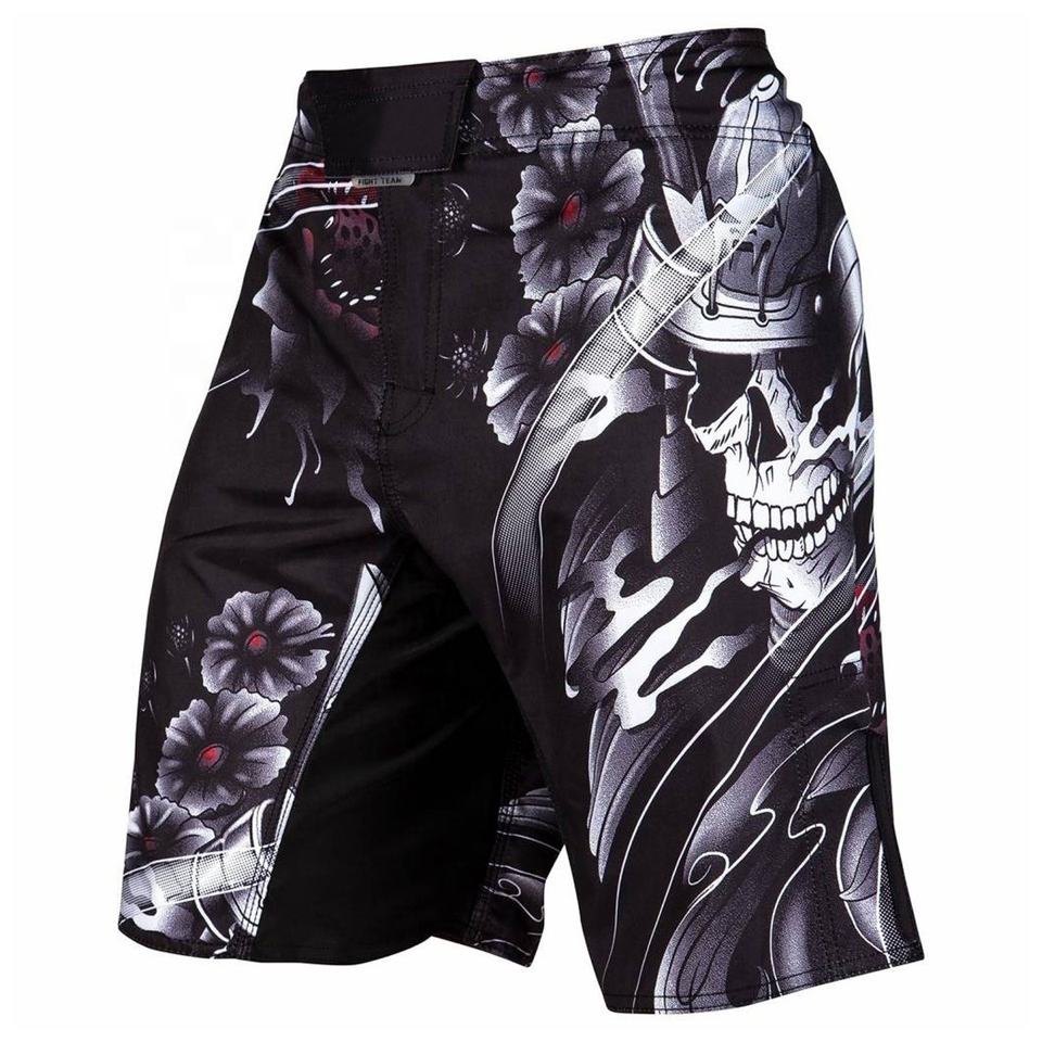 กางเกงขาสั้น MMA แบบพรีเมี่ยมผ้านิ่มเอวยางยืดเข้ารูปพิมพ์โลโก้ได้อย่างสมบูรณ์แบบเครื่องแต่งกายสำหรับชกมวยต้นทุนต่ำ