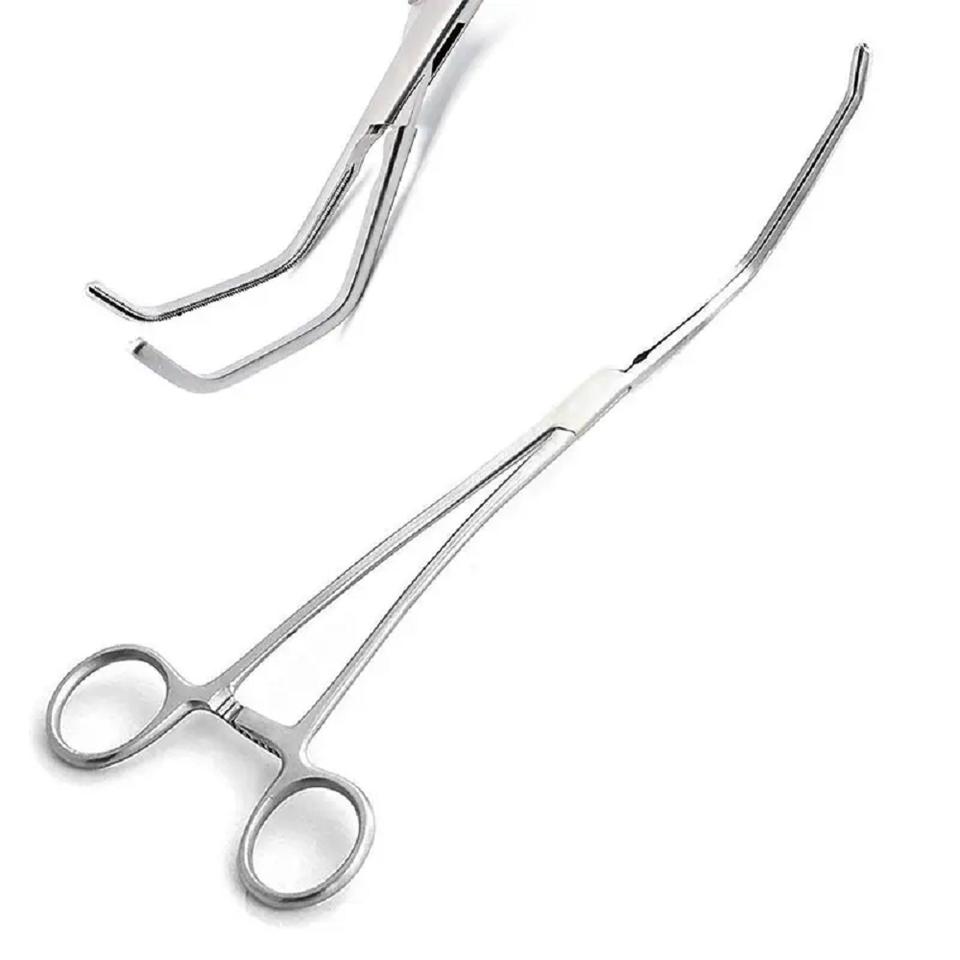 คีมหนีบหลอดเลือดแบบแมนนวลทำจากสเตนเลสปลายโค้งและคีมล็อกแบบตรง