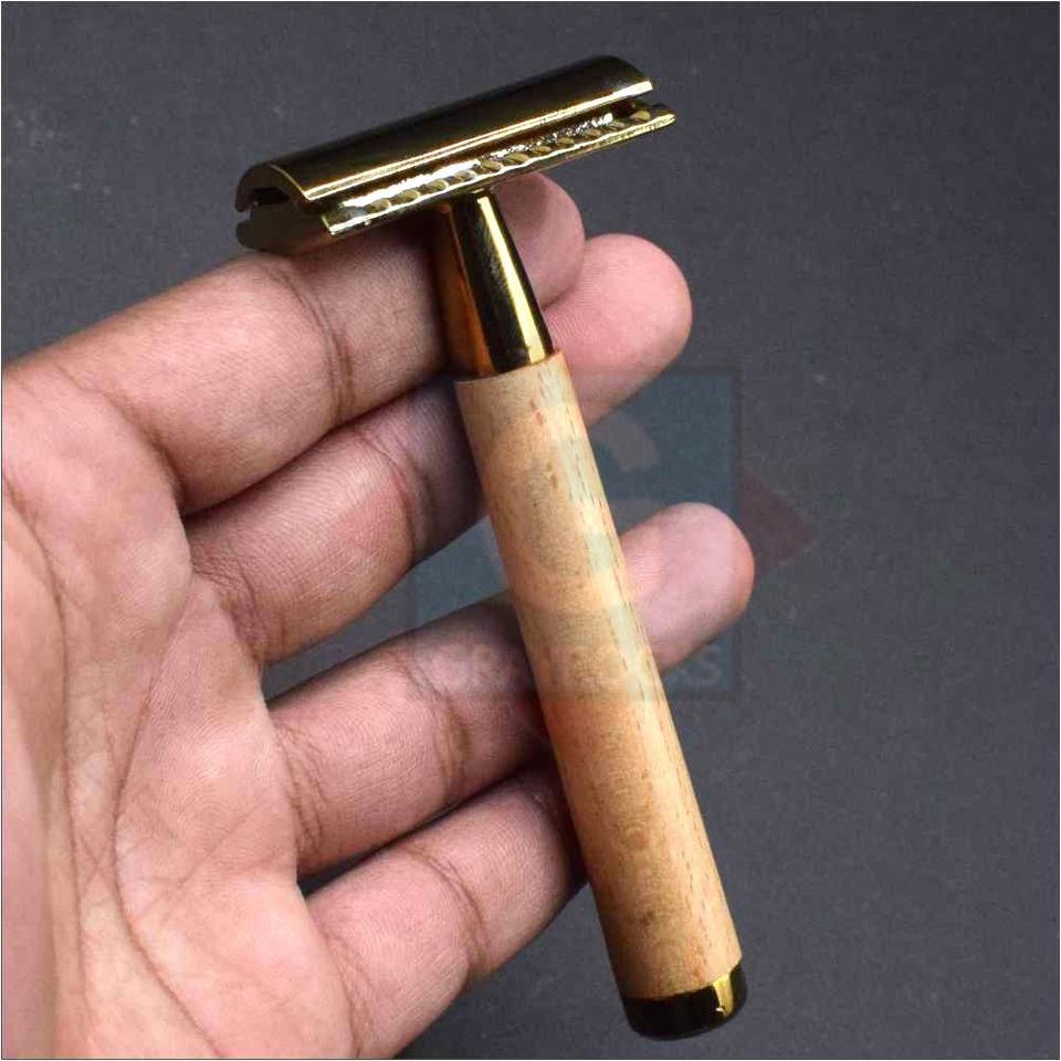 มีดโกนขอบไม้โกนหนวดแบบปลอดภัยสำหรับผู้ชายด้วยมือคุณภาพระดับพรีเมียม