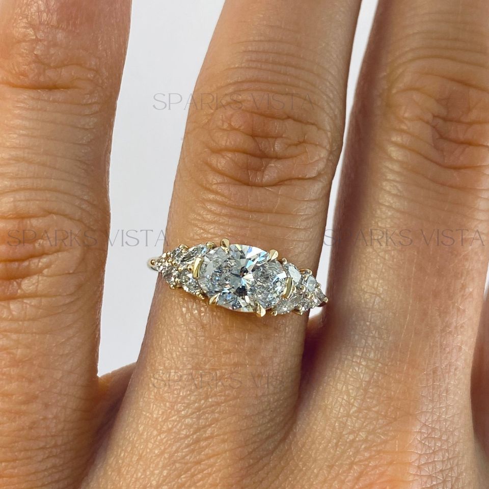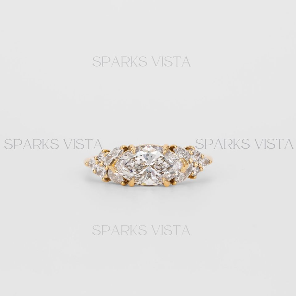 แหวนหมั้นเพชรรูปทรงมาคีส์คุณภาพพรีเมี่ยมพร้อมลูกแพร์และหินกลมแหวนแต่งงานออกแบบเป็นเอกลักษณ์