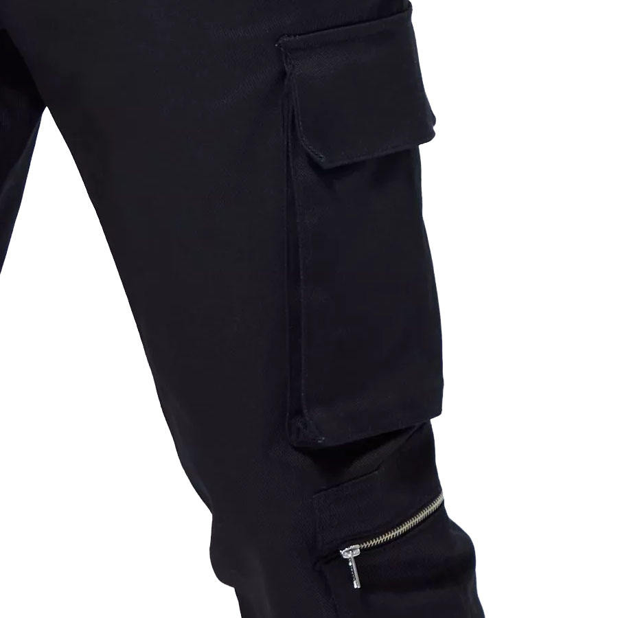กางเกงคาร์โก้สีดำสำหรับผู้ชายมีเชือกรูดและกระเป๋าซิปสำหรับใส่ของ
