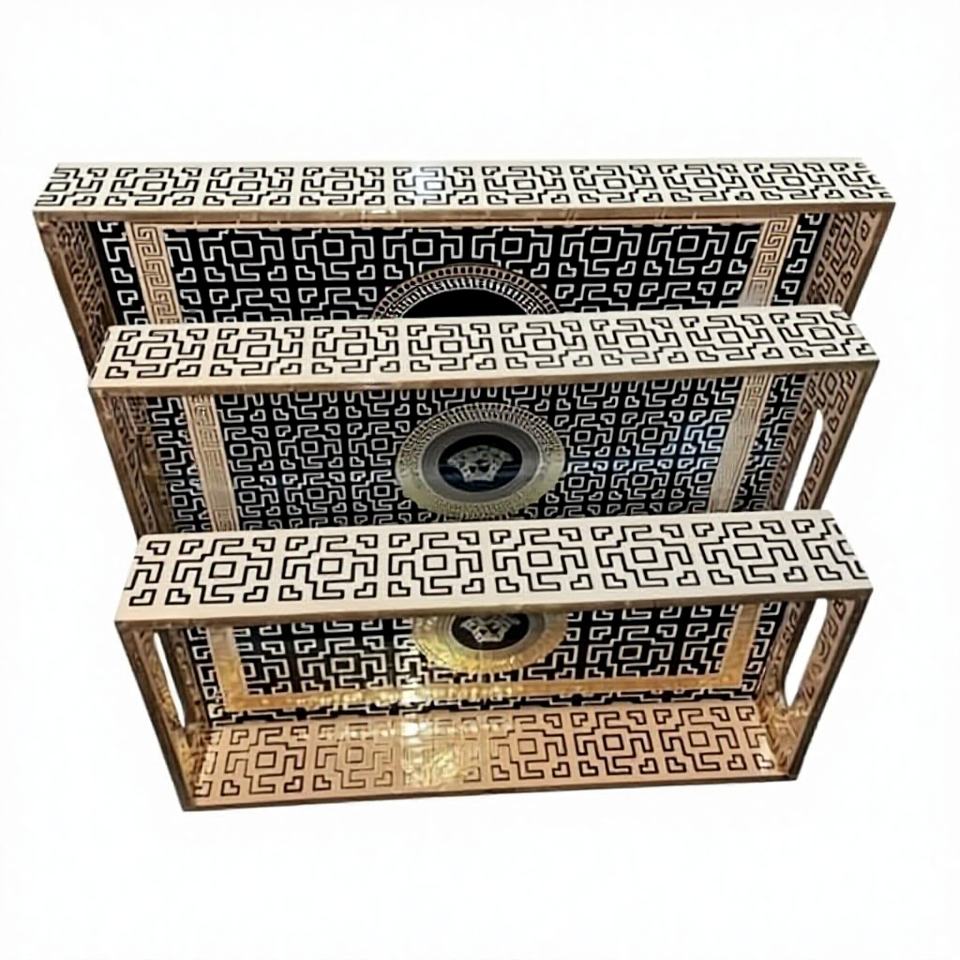 ถาดไม้พิมพ์ลายมีนา คุณภาพพรีเมียม เป็นมิตรกับสิ่งแวดล้อม ทนทาน | จานเสิร์ฟดีไซน์อินเดียสมัยใหม่ ปลอดภัยสำหรับเครื่องล้างจาน