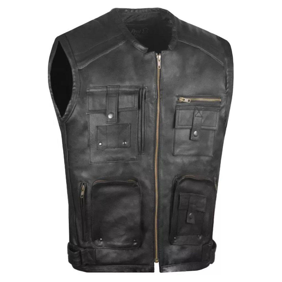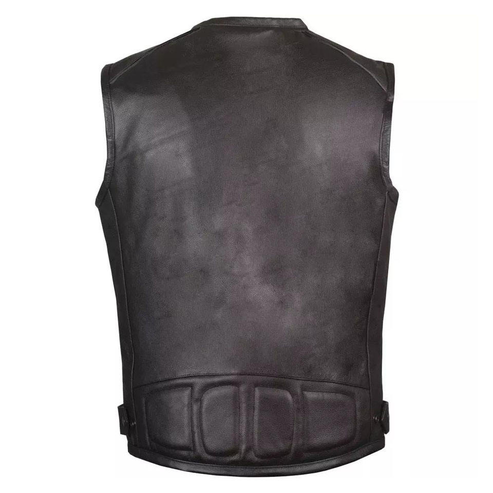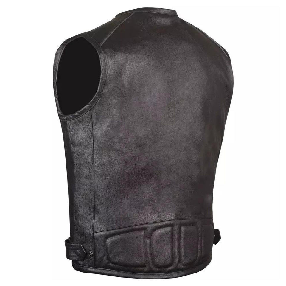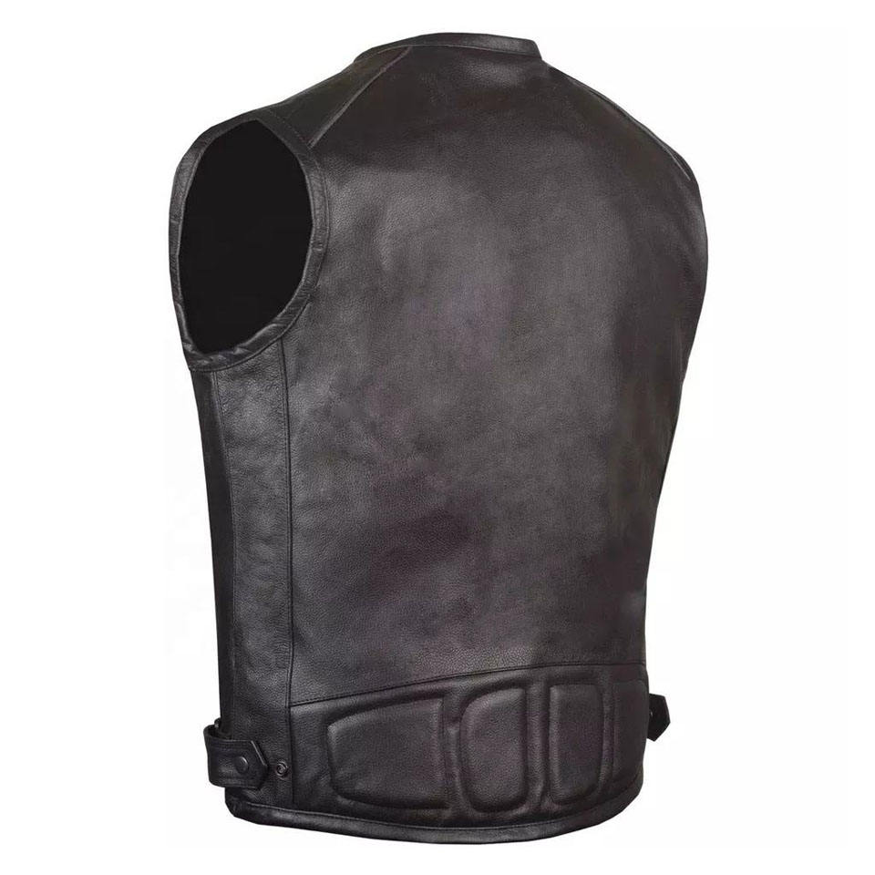 เสื้อกั๊กหนังขี่มอเตอร์ไซค์สำหรับผู้ชาย2025มืออาชีพคุณภาพสูงเสื้อกั๊กสำหรับนักปั่นหนังวัวสีดำเจาะรู