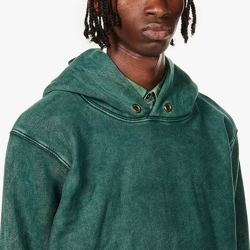 เสื้อฮู้ดดี้ผู้ชายคุณภาพพรีเมียม ทรงโอเวอร์ไซส์ ไหล่ตก สไตล์วินเทจ ทำสีซีดแบบดิสเทรส ผ้าฟลีซคอตตอน 100% สั่งทำพิเศษ