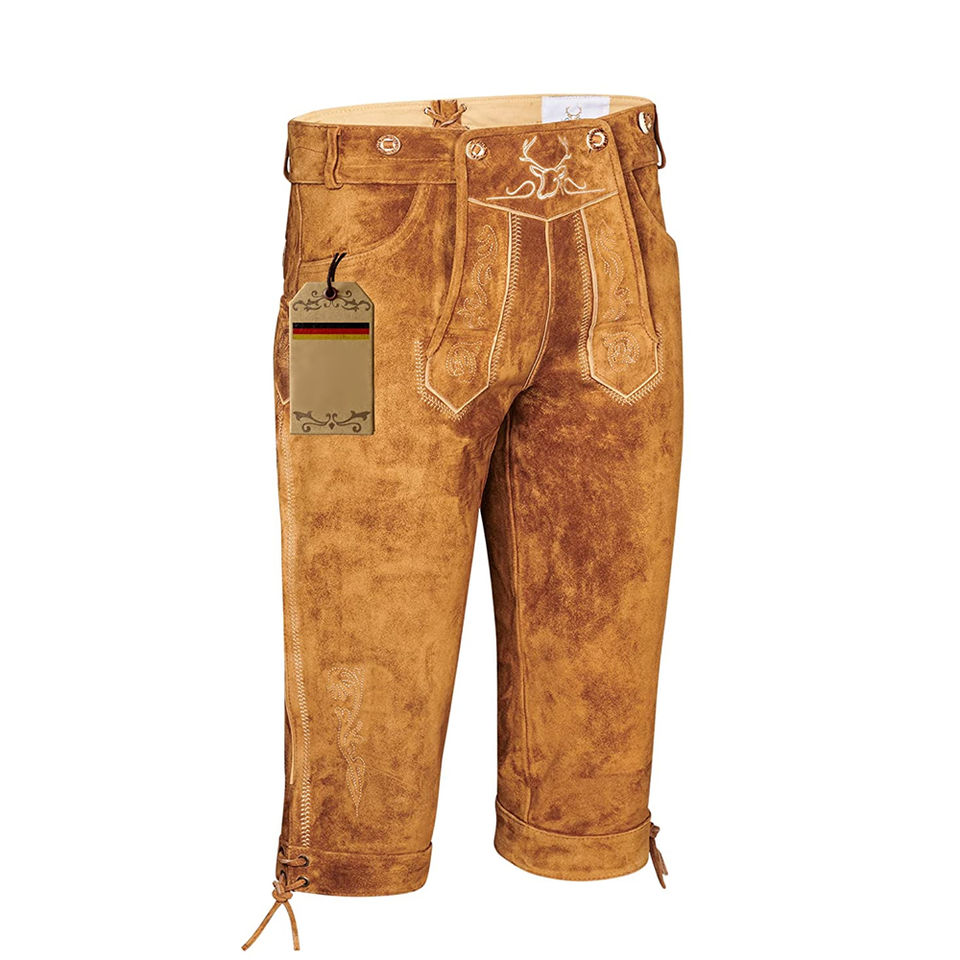ชุดเลเดอร์โฮเซินคุณภาพพรีเมียมสำหรับผู้ชาย หนังกลับแท้ สไตล์บาวาเรียน ชุดประจำชาติเยอรมันสำหรับเทศกาลอ็อกโทเบอร์เฟสต์ มีไซส์พลัส พร้อมปักโลโก้ตามสั่ง
