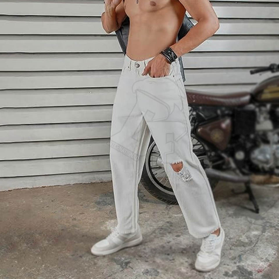 กางเกงยีนส์หยาบคุณภาพพรีเมี่ยมสำหรับผู้ชายให้ความสบายยาวนานและดูแข็งแกร่งสำหรับทุกโอกาส
